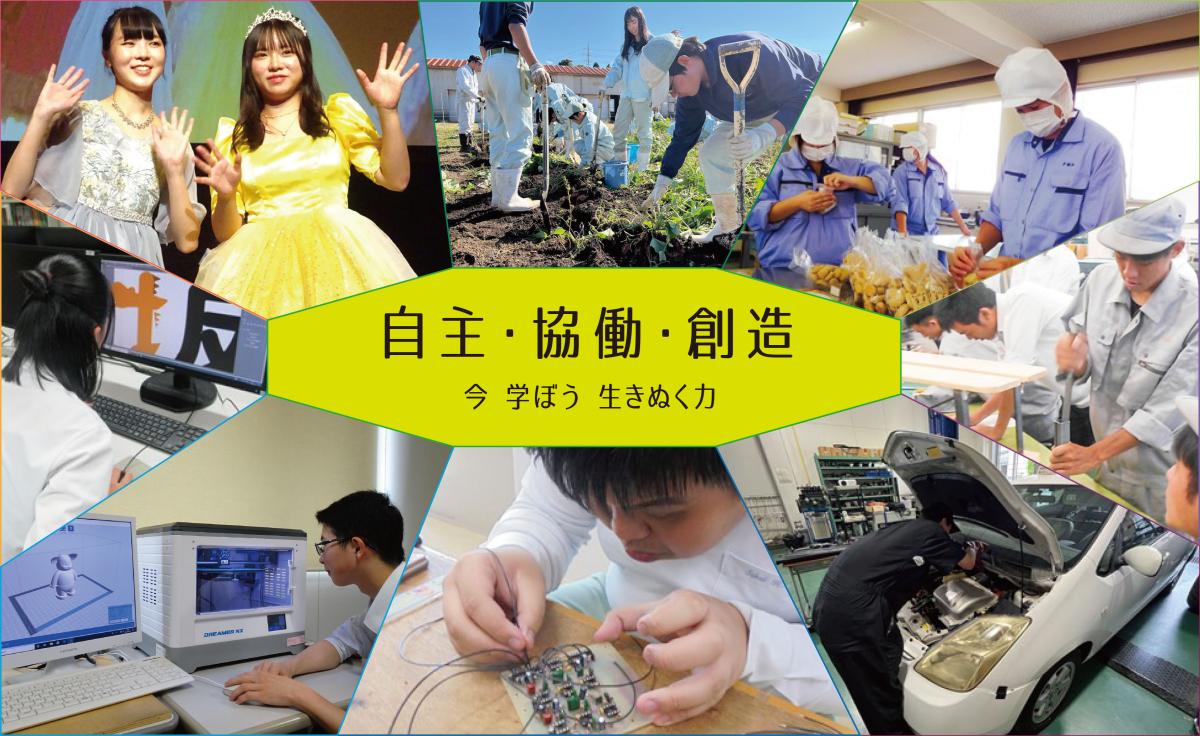 アドミッションポリシー【入学時に期待される生徒像】 1 専門教科に興味があり、自己実現に向けて主体的に学習に取り組む生徒 2 実践的な授業で身に付けた専門知識と技術を活かし、地域社会に貢献したい生徒 3 多様な学びや考え方に触れ、新たな価値の創造に挑戦したい生徒 4 部活動や学校行事等に積極的に参加し、仲間とともに自らを成長させたい生徒 |